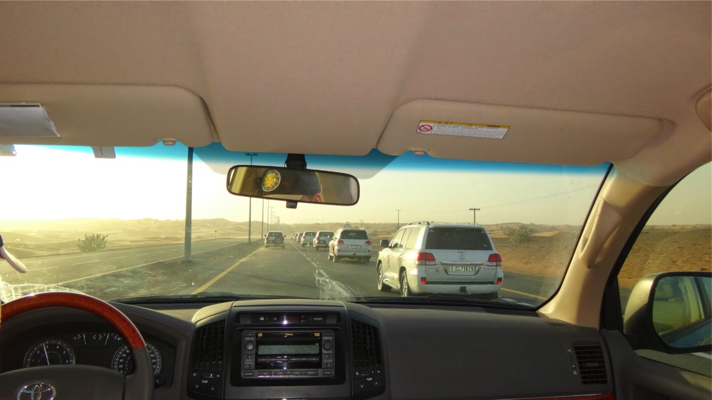 O carro era muito confortável e com barras de segurança... Vejam o vento forte no meio do deserto.